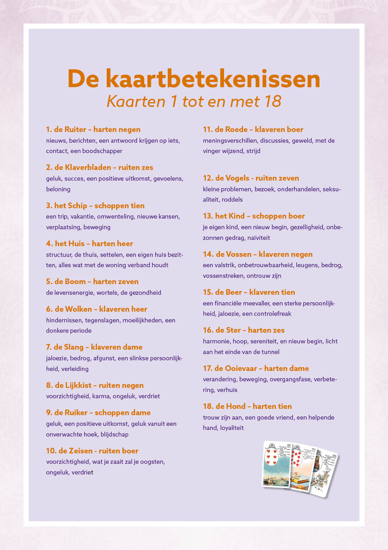 Bron: Deze cursusreeks is gebaseerd op het ‘Lenormand Legpatronen Werkboek’ ISBN: 9789464079838 – Verkrijgbaar in alle boekenwinkels in België en Nederland en via Bol.com