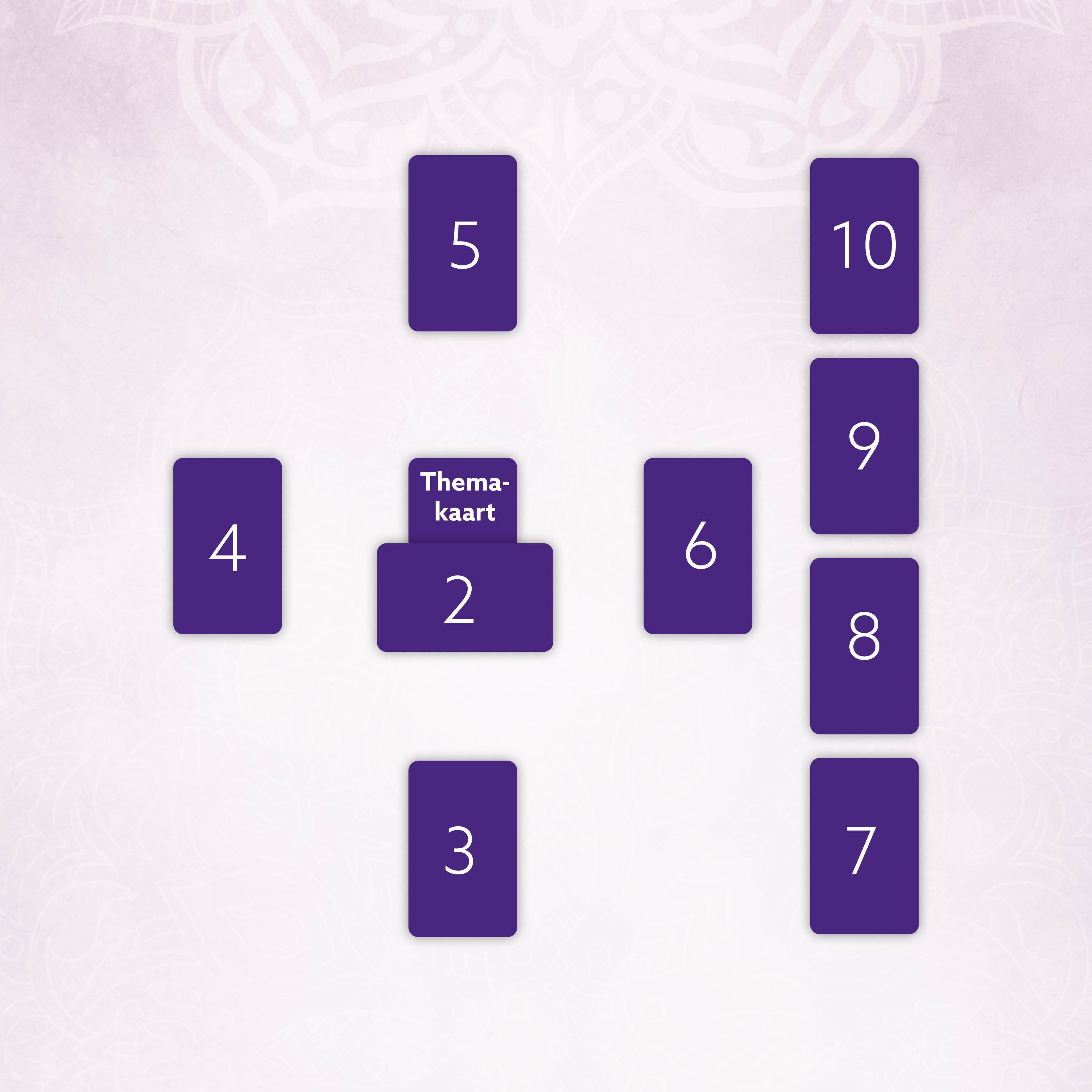 Allereerst is het belangrijk om stapsgewijs en in chronologische volgorde de kaartposities in je op te nemen. Je begint met de situatie- of themakaart op positie 1. Vervolgens kijk je naar datgene wat tegenwerkt, op positie 2. Daaropvolgend nemen we de kaarten op positie 3 en 4 in beschouwing. Ze onthullen onder meer de oorzaak van het probleem en datgene wat weinig aandacht krijgt. De kaart op positie 5 laat het verdere verloop zien en op positie 6 aanschouwen we de nabije toekomst. Aansluitend neem je de kaarten op positie 7, 8 en 9 in je op. Tot slot onthult de kaart op positie 10 het resultaat of het antwoord op de gestelde vraag.