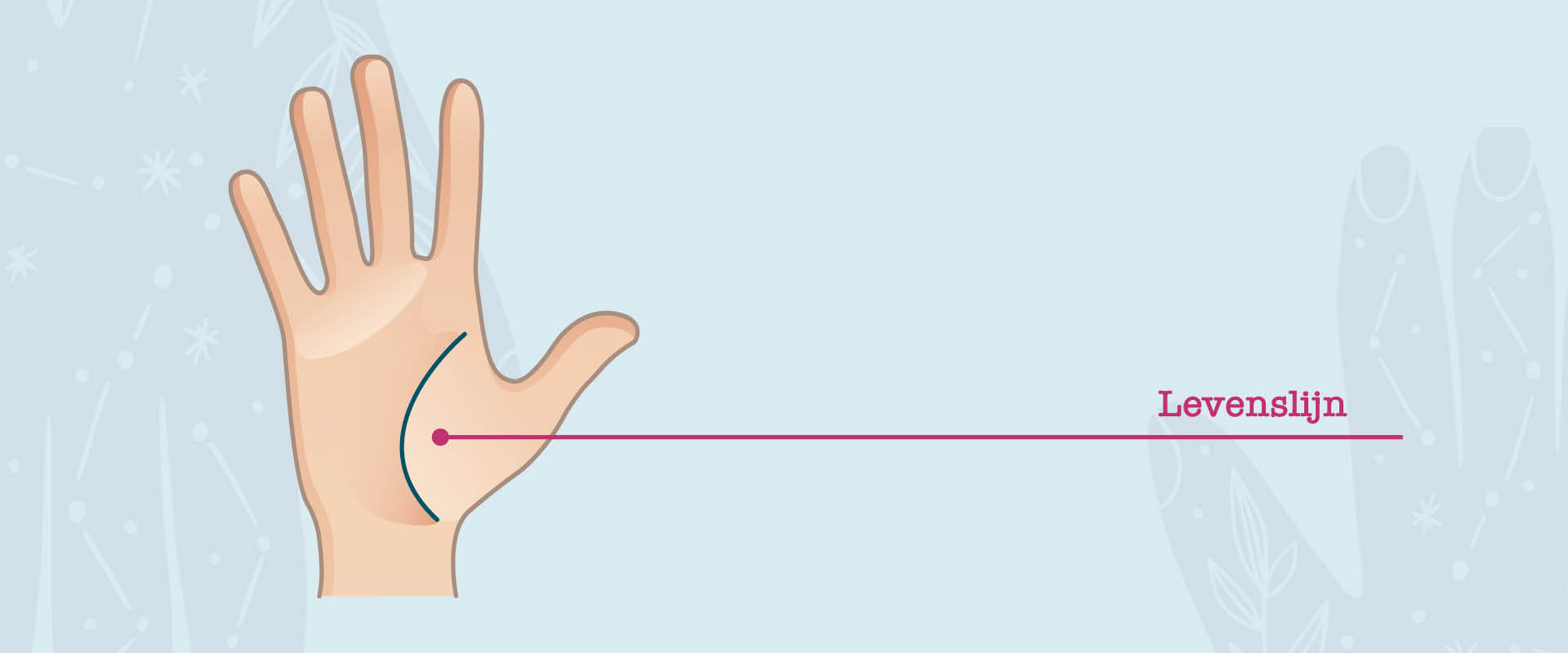 De levenslijn begint 2 centimeter boven de aanzet van de duim en begrenst de muis van de duim (het gewelfde gedeelte van de handpalm net naast de duim). Op deze levenslijn vinden we de belangrijke gebeurtenissen in het leven terug, vooral ongelukken en ziekten. Het is belangrijk om die levenslijn niet individueel te interpreteren. De andere handlijnen hebben een zekere controlefunctie over deze levenslijn.
