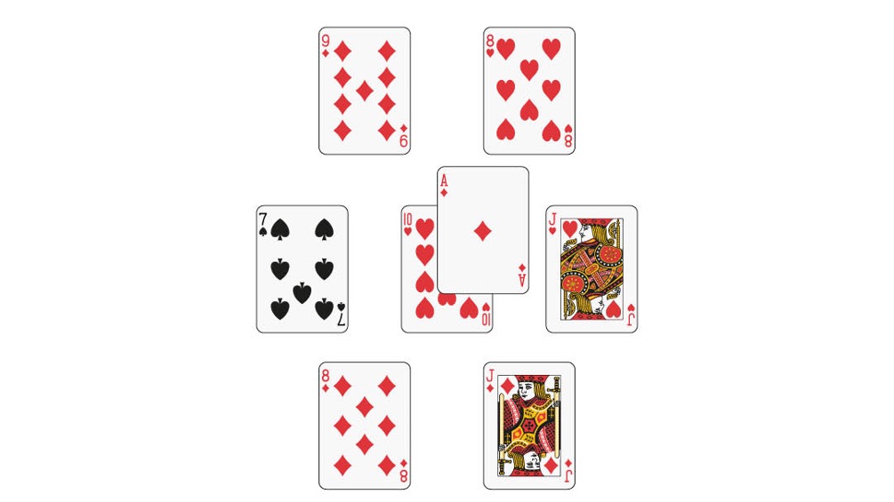 - Ruiten zeven (vijf ruiten liggen onderaan de kaart)