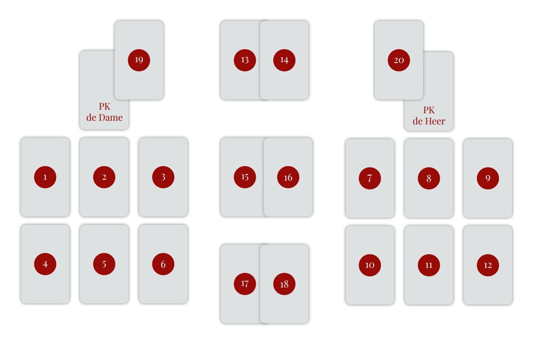 Leg de kaarten open volgens het onderstaande voorbeeld